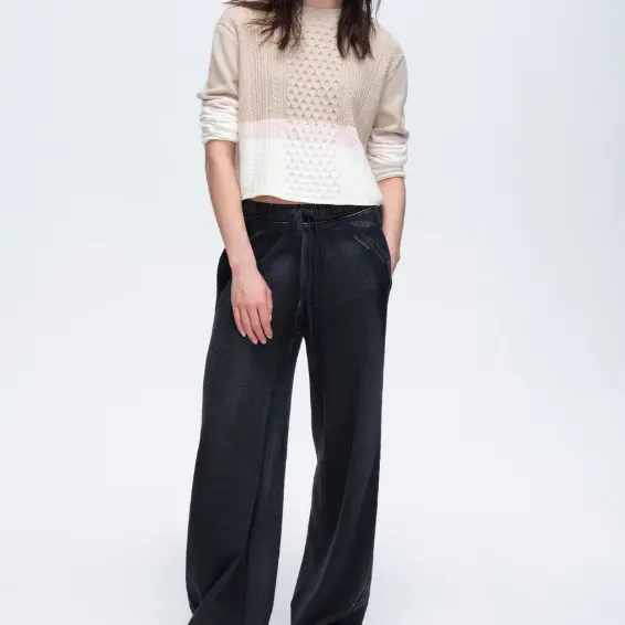 As the factory and manufacturer, we've crafted this cropped knit sweater with an exquisite color - block design. The harmonious blend of beige, light pink, and white creates a visually appealing and trendy look. Each color - block is adorned with different knit patterns, such as the textured diamond pattern and the classic cable knit, adding depth and interest. This unique design makes the sweater a standout piece. It pairs well with the shown pants, but our manufacturing capabilities allow for it to be styled with a beige or white half - skirt, expanding its versatility for various fashion scenarios.